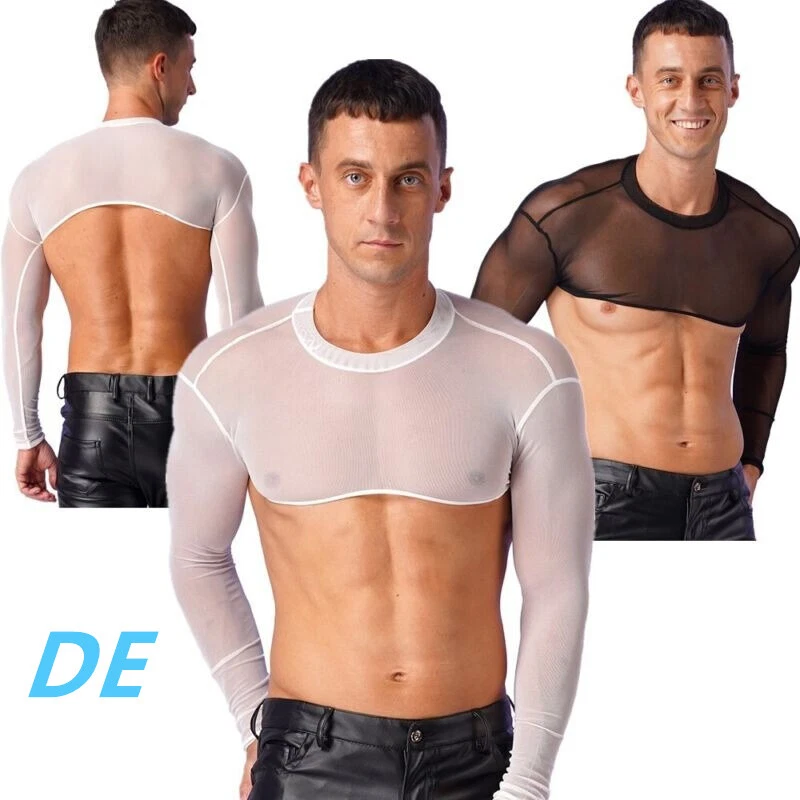 De Herren Durchsichtiges Mesh Crop Top Netzhemd Kurz Langarm T Shirt Unterhemd Ebay